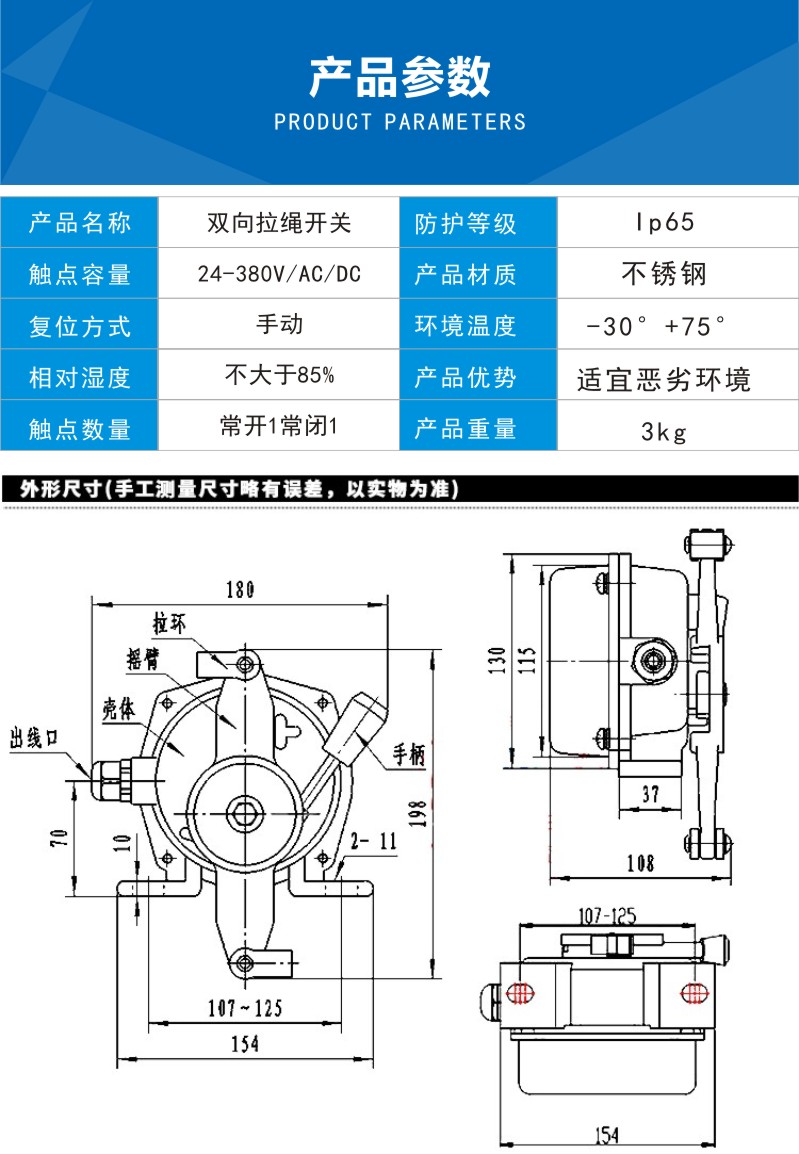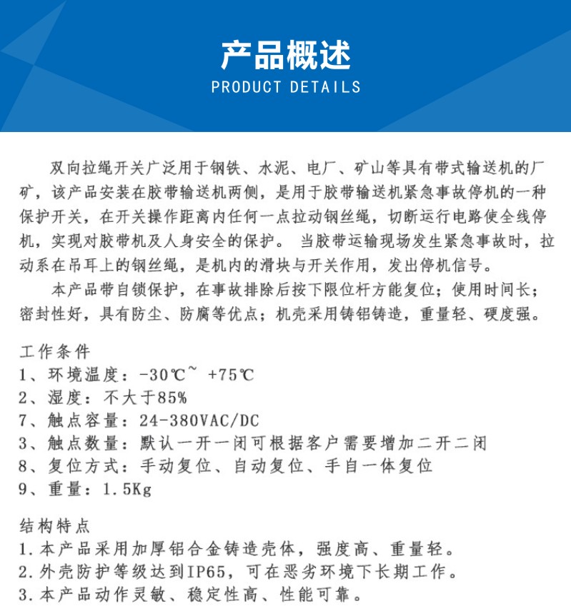 不锈钢双向拉绳开关